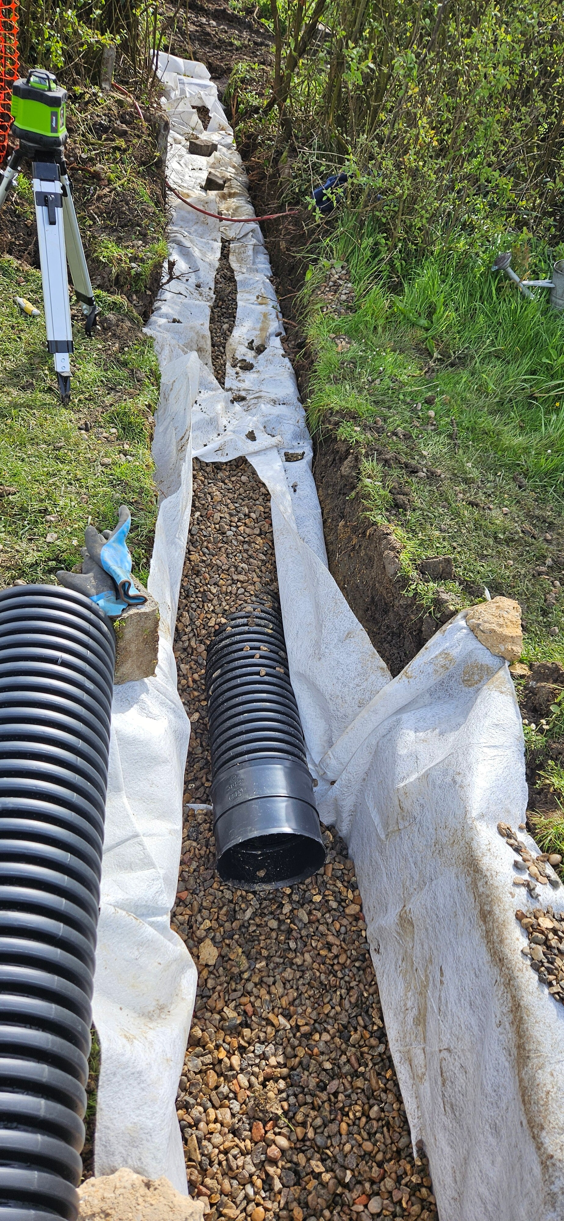 This cottage was subject to flooding in heavy downpours. We had to excavate a deeper ditch along the front of the property to collect the run off of water from the fields, we then had to install a new pipe run through the rear garden to divert the water to the ditch at the rear of the property. We then raised the levels of the driveway and the road leading to the driveway so that the ditch would not overflow towards the property, an ACO drain was installed to collect any water that was running towards the cottage. Gravel grid was then installed to the road to act as both drainage and a hard standing surface to drive on.