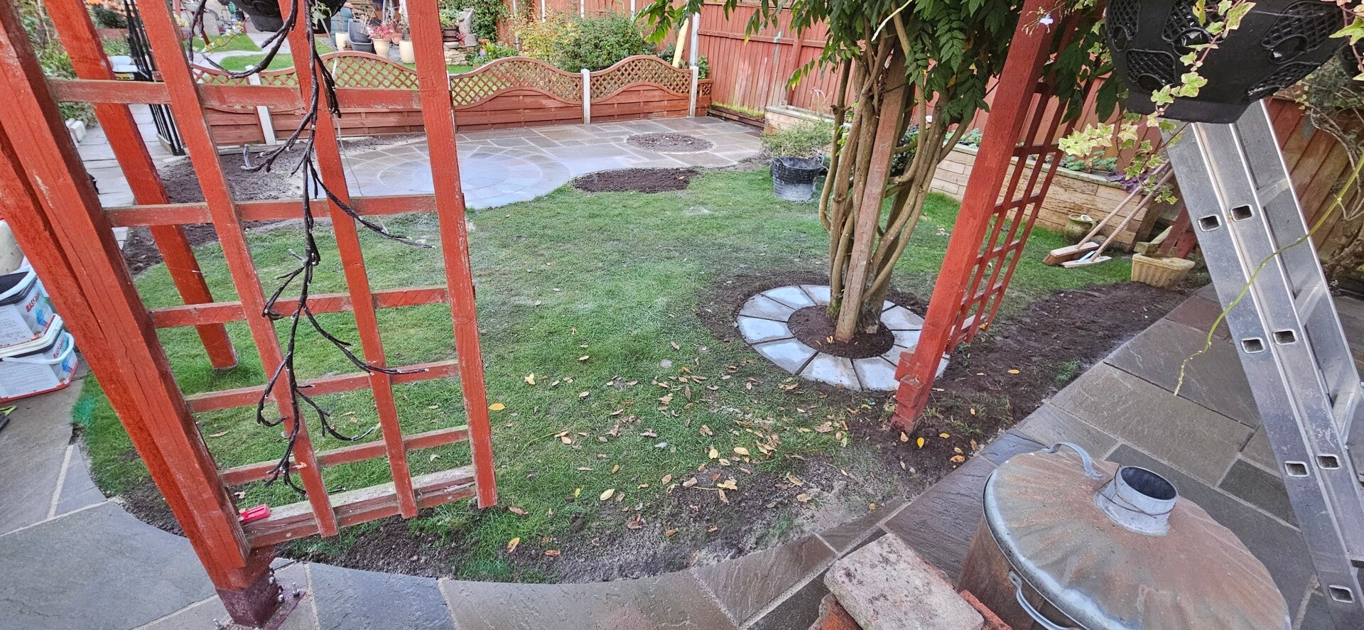 AUTUMN BROWN INDIAN SANDSTONE PAVING 600 X 900 WITH PAVING CIRCLE