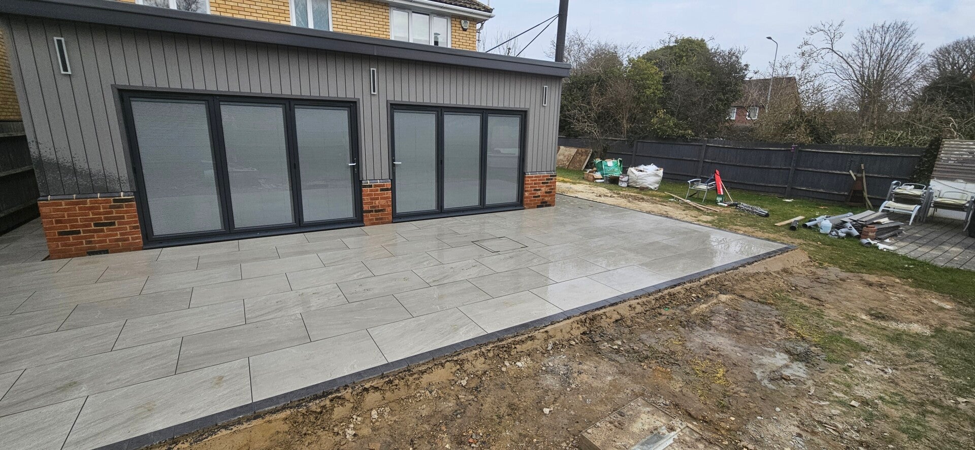 KANDLA GREY PORCELAIN PAVING WITH ANTHRACITE BORDER 900 X 600.