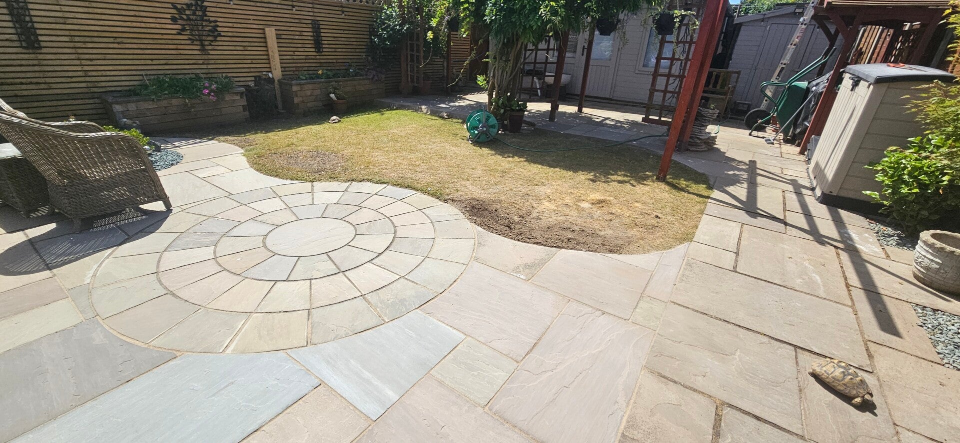 RAJ GREEN INDIAN SANSTONE PAVING WITH PAVING CIRCLE